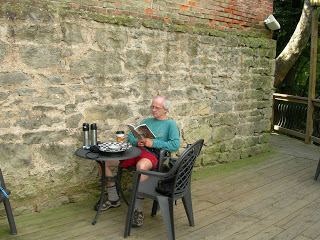 “Doing what?” you well might ask. For me, writing; for my wife, reading, dozing, journaling. And not only do the owners not mind our hanging out, they encourage it by greeting us with warm smiles, bringing food and drink out to us on the deck as if it were a fine-dining restaurant rather than a coffeeshop!